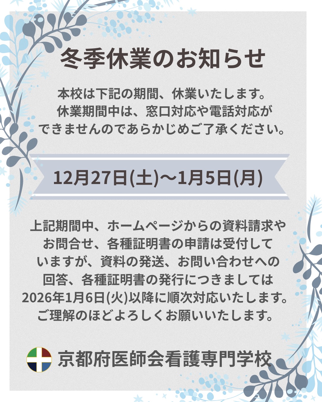 上記の休業期間中に到着した郵送での各種申請のご依頼は、2026年1月6日(火)以降に順次発行手続きを行います。