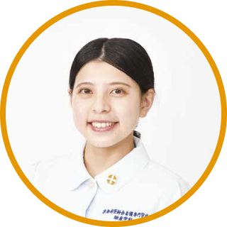 私はもともと介護福祉士として働いており、看護師と一緒に仕事をする中でその職に興味を持ちました。社会人を経ていることもあり、3年で看護師資格を取得できる本校に入学しました。現在は病棟看護師として、傷の処置や手術前後の処置、ADL介助などに当たっています。学校では、友だちとお互いに助け合って実習を乗り切り、国試前には教え合いながら勉強しました。いつでも質問や相談に応えてくださる先生方の存在もありがたかったです。看護師は資格としても魅力的ですが、取得までの過程で得られる知識、友人との出会いも一生ものになりますよ。